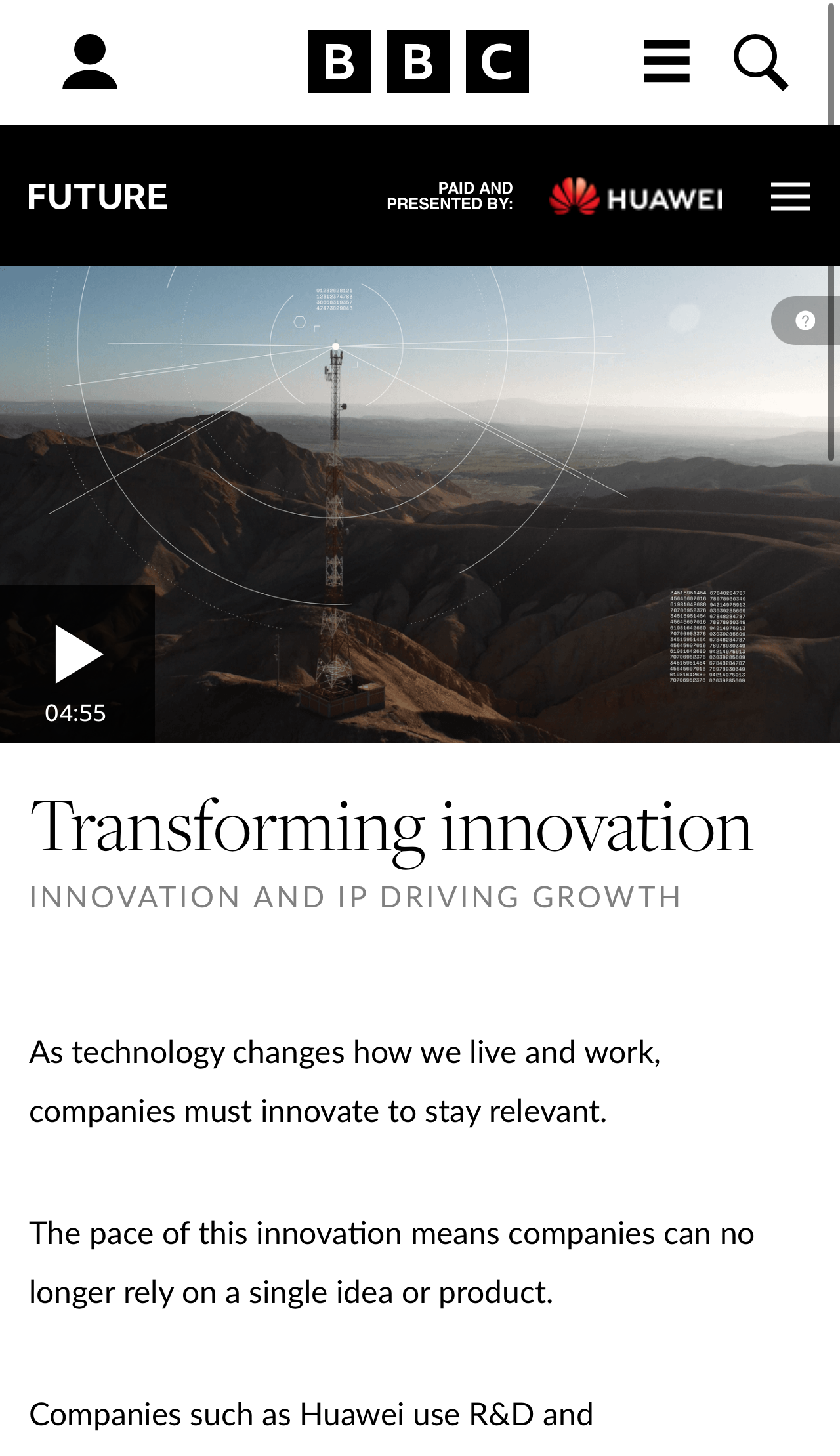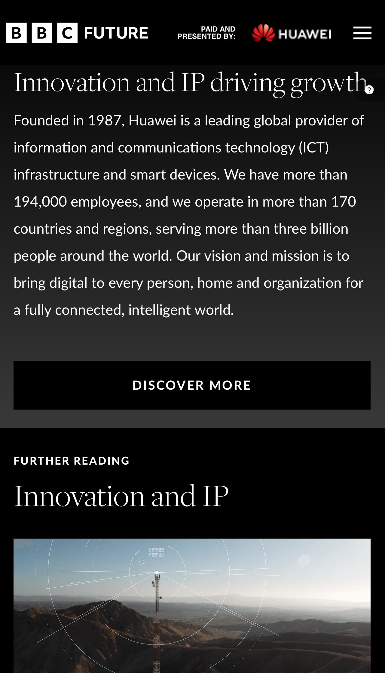 These campaigns were broadcast on BBC Worldwide, featured on a dedicated BBC online hub, and used throughout Huawei’s social and digital channels.